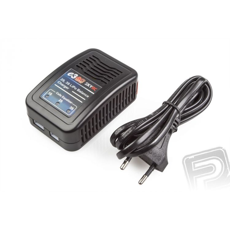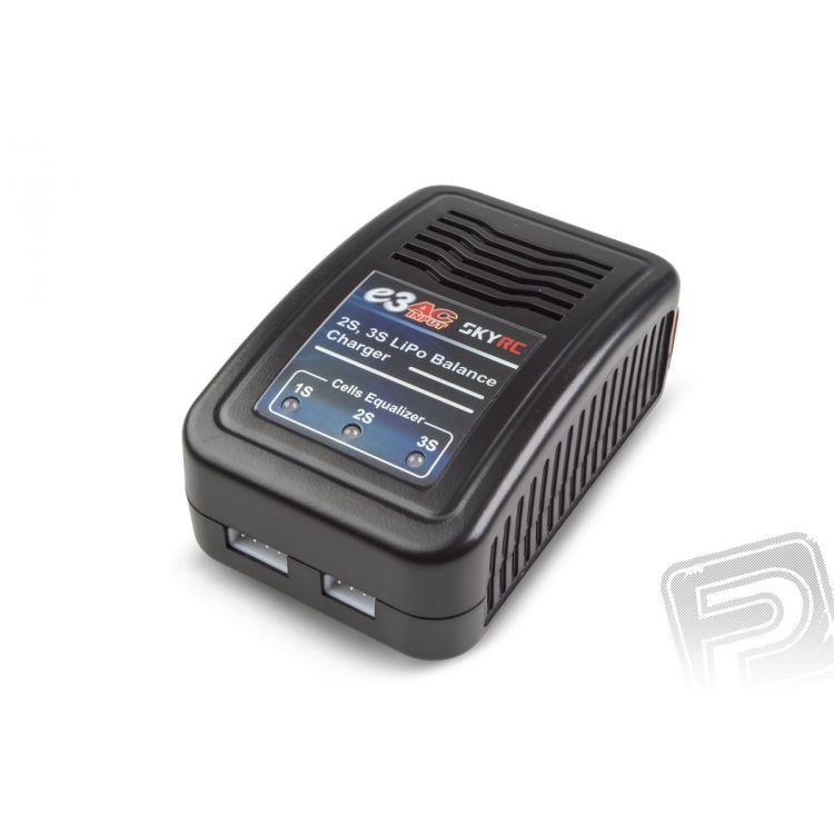 Nabíječ SKY RC e3 s vestavěným balancerem je velmi jednoduchý "krabičkový" nabíječ pro rekreační jezdce a letce se síťovým napájením pro nabíjení Li-poly akumulátorů. Je ideálním doplňkem "setových" stavebnic umožňující jednoduché nabíjení doma nebo výborným společníkem na cesty, kdy s sebou nechcete "tahat" velký, těžký a drahý nabíječ. Nabíjený akumulátor se připojuje k vestavěnému balanceru prostřednictvím servisního konektoru; nabíječ je opatřen dvěma zásuvkami (2s, 3s) pro konektory systému JST-XH. V jednu chvíli je možno nabíjet vždy jen jednu sadu - buď dvoučlánkovou, nebo tříčlánkovou.